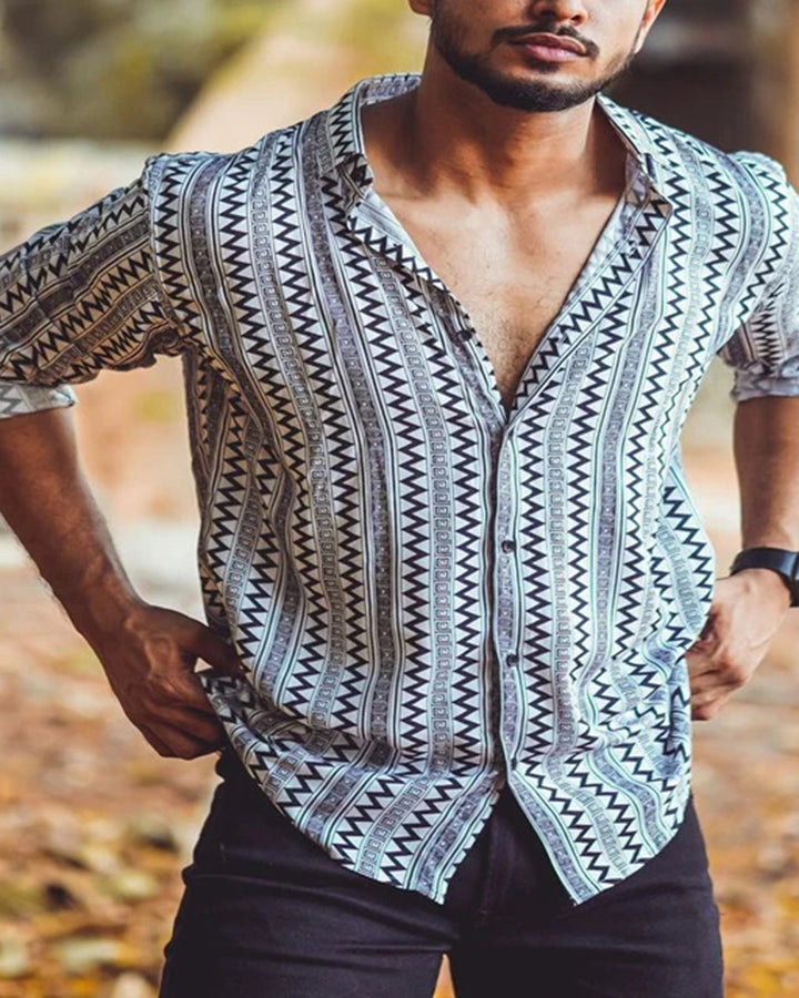Light Blue Colored Zigzag Printed Full Sleeve Shirt