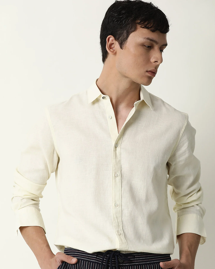 Light Yellow Colored Linen Shirt