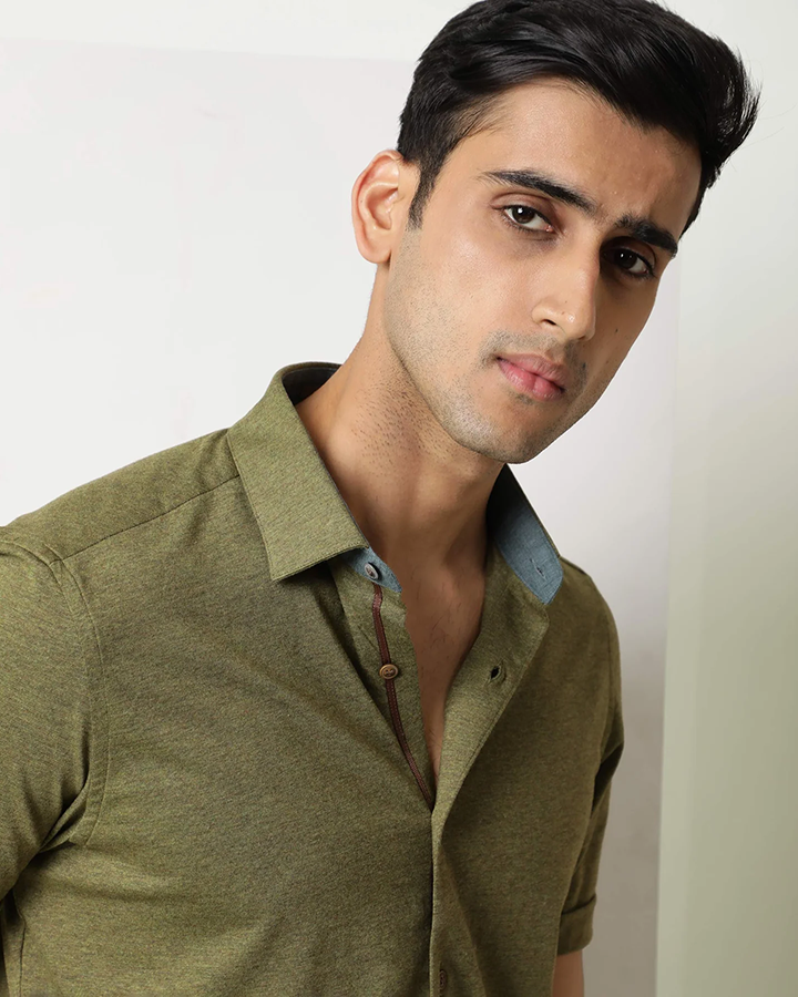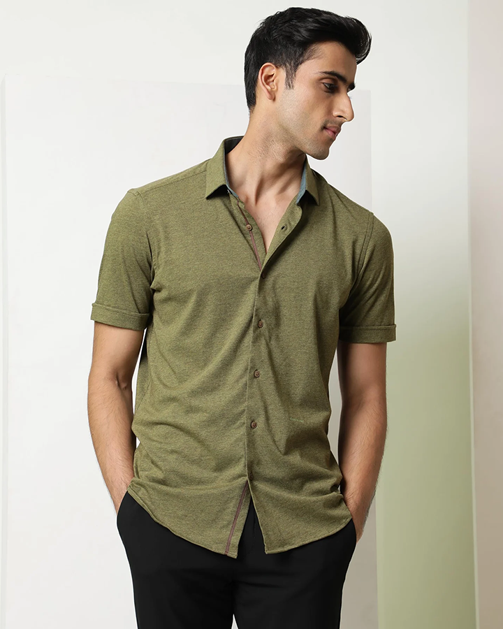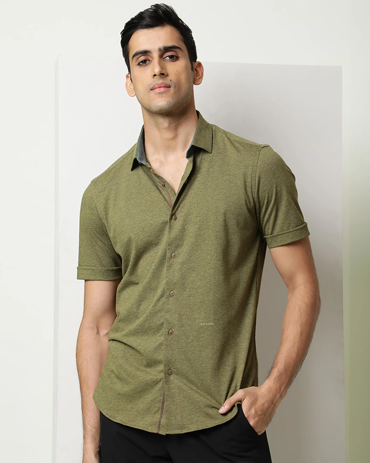 Olive Green Colored Half Sleeve Solid Shirt
