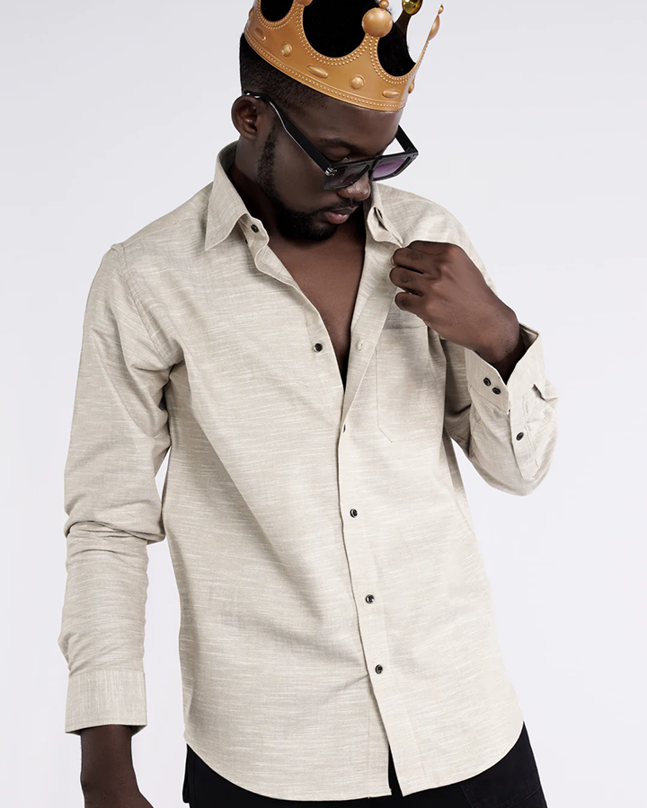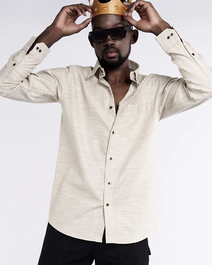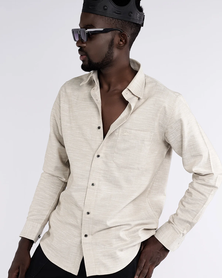 Vanilla Cream Colored Linen Full Sleeve Shirt